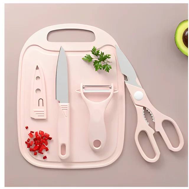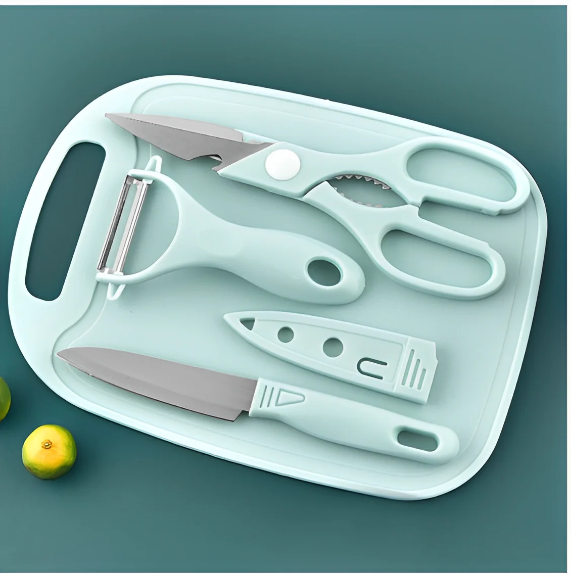 Kit Facas, Tesoura, Descascador e Tábua – 4 Peças 🥑🔪