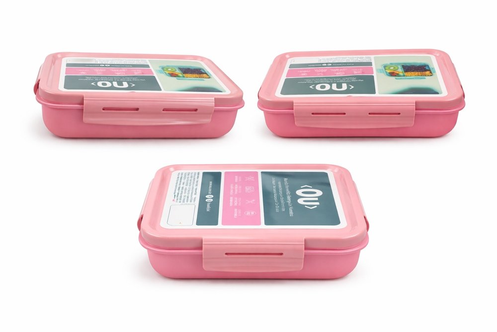 Marmita Hermética Retangular Divisória rosa